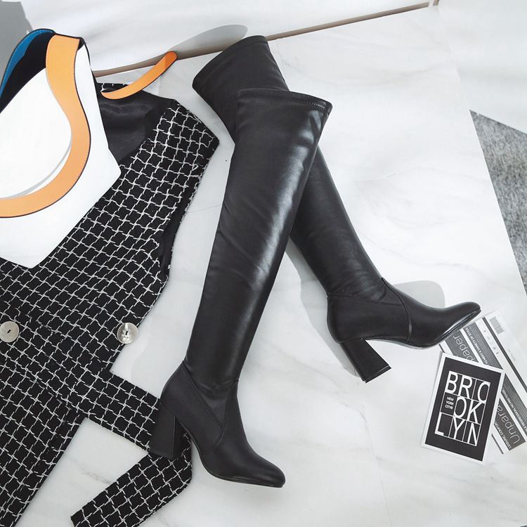 Elevate your style with our stunning Chunky Heel Stretch Over The Knee Boots. Designed to make a statement, these high heel boots are perfect for fashion-forward individuals who appreciate both comfort and chic aesthetics.