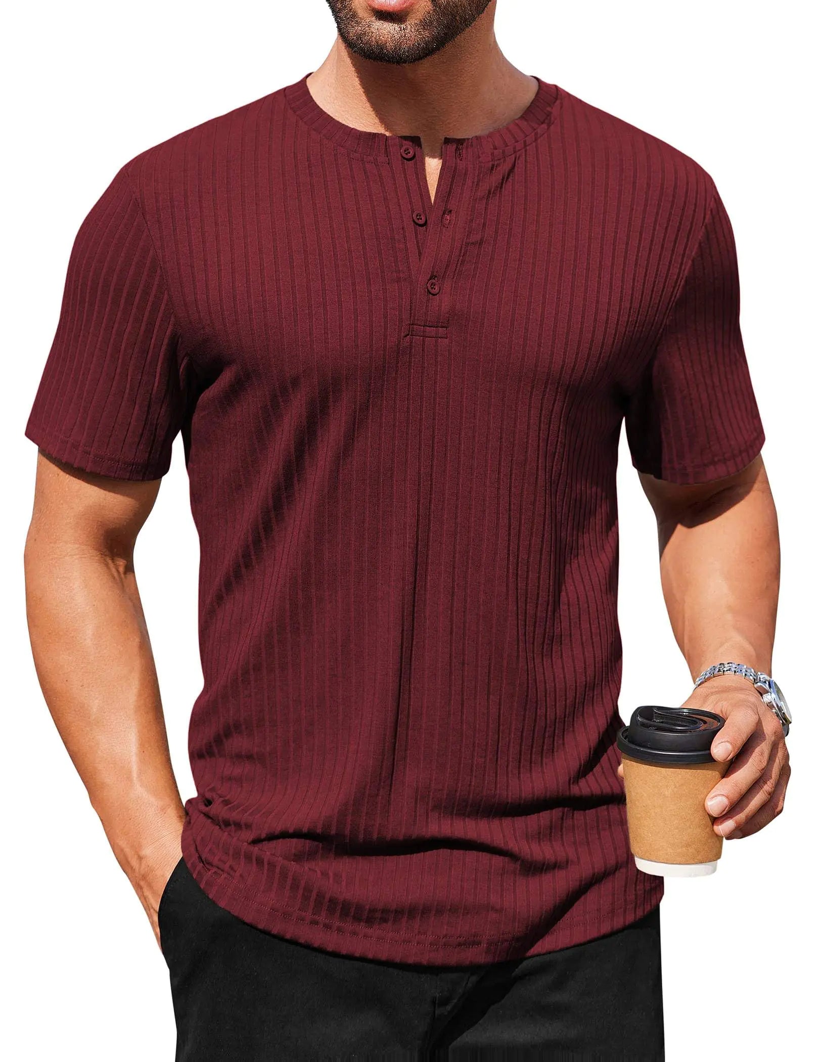 COOFANDY Mens Henley Short Sleeve Casual Stylish T Shirt Textured Button T-Shirts